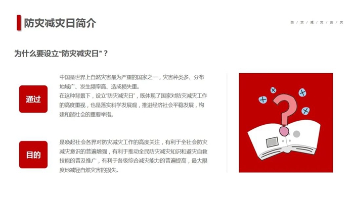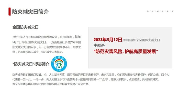 在第15个“5·12全国防灾减灾日”到来之际,色情网 按照党中央、国务院、北京市委市政府部署的工作要求,以“防范灾害风险,护航高质量发展”为主题,深入开展防灾减灾宣传,以增强全系统干部职工安全忧患意识,提高防灾减灾及应对能力。