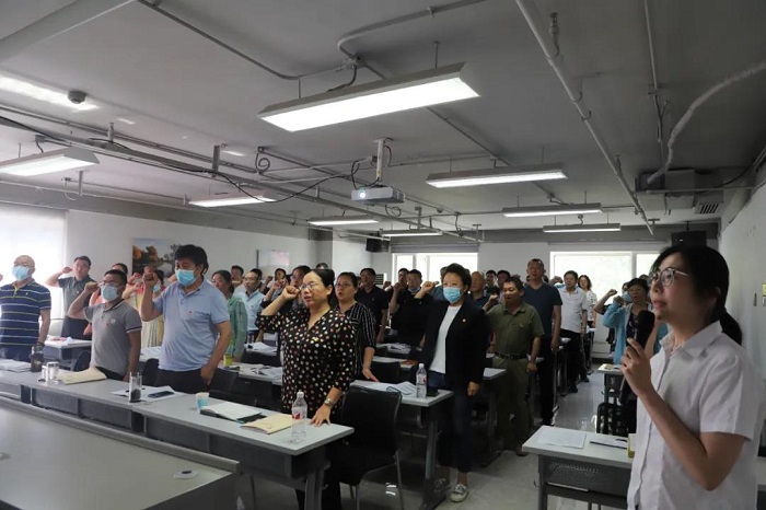参加培训的党支部书记面对鲜红的党旗,庄严地举起右手,党旗前重温入党誓词,“我志愿加入中国共产党……”一句句誓词铿锵有力,声声震耳。这是初心使命的再宣示,这是接续奋斗的再出发,更加明确了奋勇拼搏的使命责任,要为打造创新型企业集团作出积极贡献。