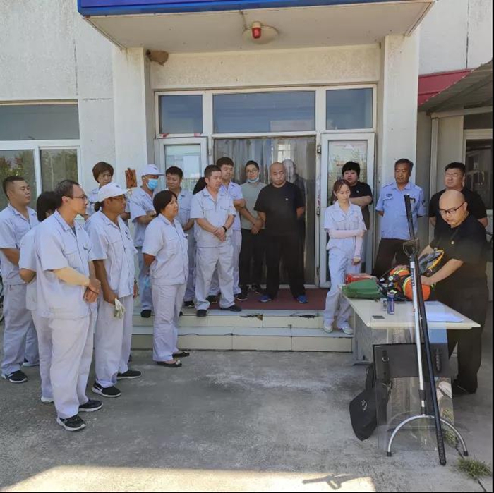 第二党支部结合三个部门业务工作和特点,以抓好、守牢“安全”这个最大的实事为切入点,请专业人员讲解了正压式空气呼吸器、过滤式消防自救呼吸器、自吸过滤式防毒面具、防刺背心、防暴盾、防暴叉、防狼喷雾等设备的操作方法和注意事项。参加活动人员不仅近距离进行了观看、学习,还亲身穿戴、亲手体验,反复演练设备操作方法。