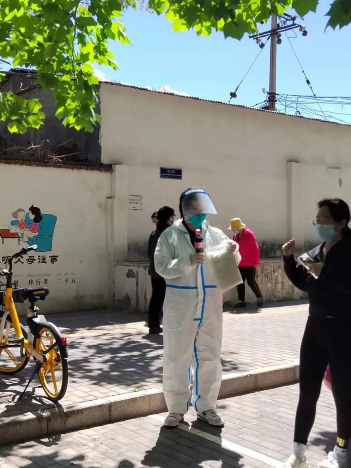 维持检测秩序、进行现场消杀、撕拆采样拭子、协助拆装门磁……在做好个人防护的同时,我在尽力做着自己能做的一切。天冷的时候给同伴递上挡风的棉衣;酷暑时,为医护人员送上降温的冰水;遇到人们的各种不满和误解的时候,也尝试着从他们的角度去解释、沟通。看到熟悉的面孔调侃几句;遇到幼小的孩童,兼起看护的职责。每天中午,草草地吃完午饭,放弃午休的机会,去替换年轻的社工和志愿者,争取让他们多休息一会儿,好养精蓄锐、下午继续更艰苦的战斗。要不是眼睛有点儿见花,怕影响操作速度,我甚至想过去跟社区书记争取机会,像年轻人那样,穿上隔离服去录入身份信息……