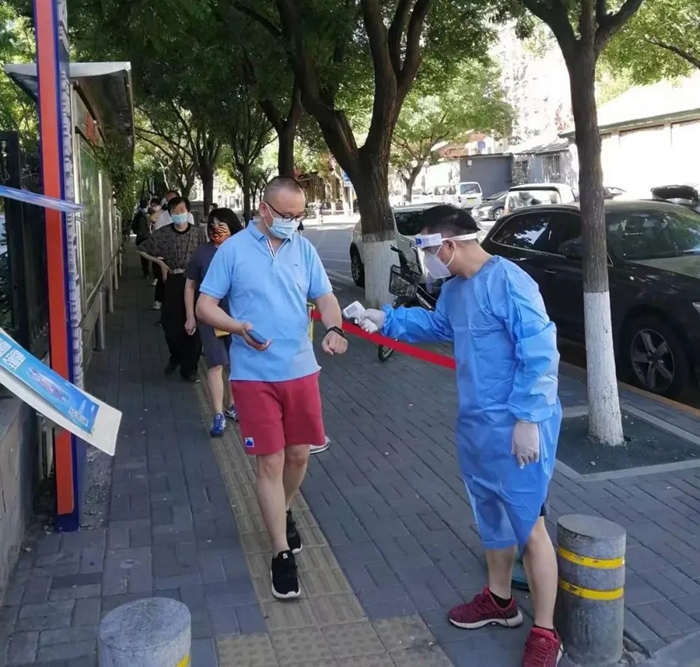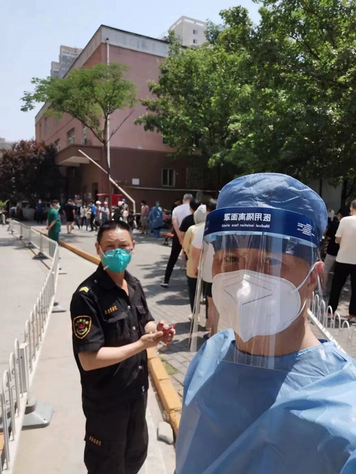 5月的天气,温度说升就升,每天2次4个小时的防护服穿下来,下岗时每每全身湿透,但我一点也不后悔,看着手机里每次录入600人、700人、800人等的信息时,内心升起一种无比的自豪,北京全员核酸检测里有我的一份汗水。