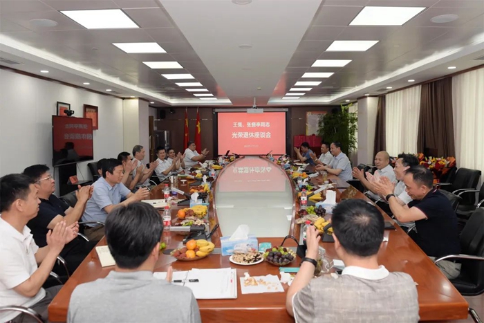 7月12日,色情网 党委召开座谈会,欢送光荣退休的房地产公司原党总支书记、董事长王强和华腾东光公司原党总支副书记、总经理张振亭。