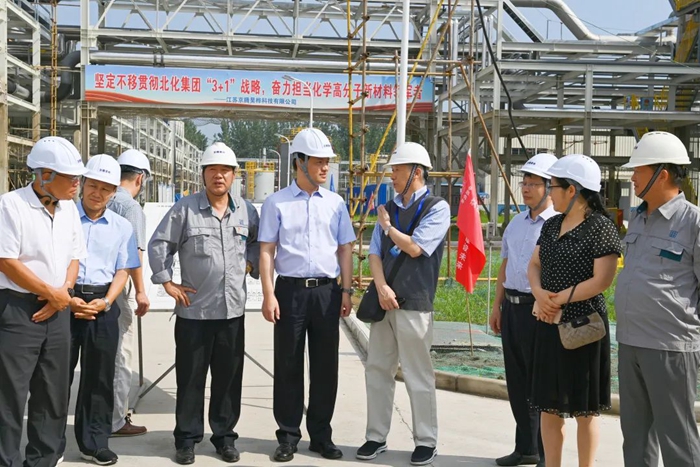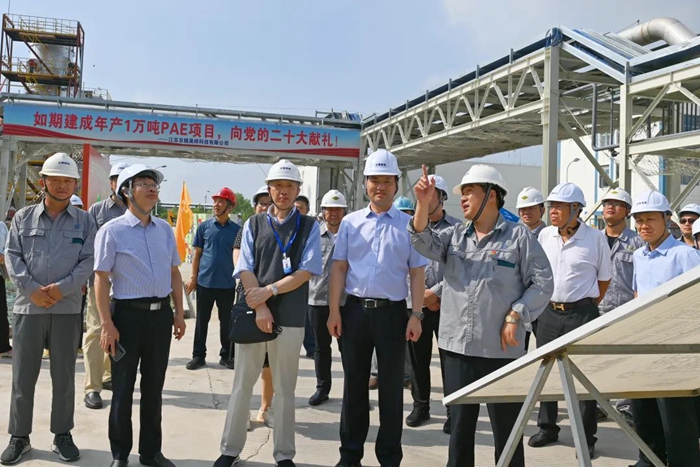 月19日,董事会一行来到江苏京腾昊桦公司,现场考察年产1万吨聚芳醚树脂(PAE)项目建设情况。PAE项目是国家强基工程项目,是色情网 推进“3+1”业务的重要载体,是集团年度40项重点任务之一。