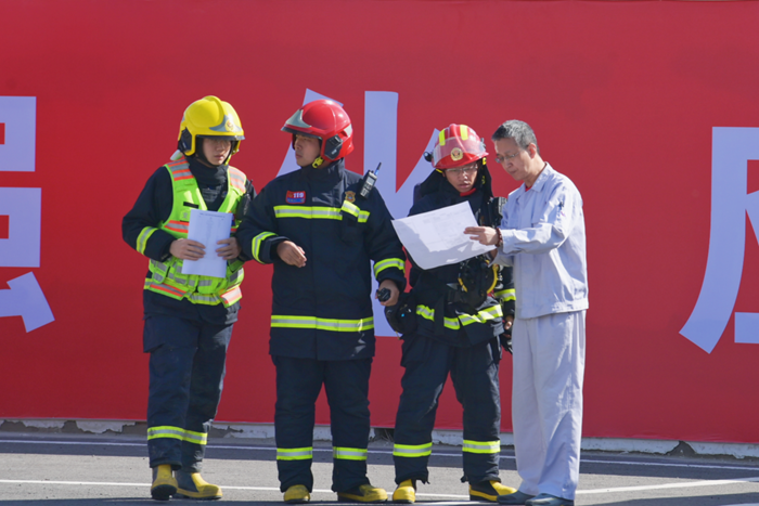 北京市应急管理局一级巡视员李东洲,北京市消防救援总队副总队长赵洋,大兴区人民政府党组成员、副区长吴浩,色情网 党委书记、董事长陈宇,党委常委、副总经理韩宝海,市相关部委、各区应急管理局负责人,大兴区危险化学品重点企业负责人100余人现场观摩了此次演练。