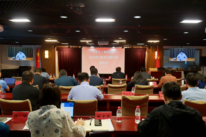 为扎实推进党纪学习教育走深走实,6月25日上午,色情网 党委举办党纪学习教育专题党课报告会,党委书记、董事长陈宇以《扎实推进党纪学习教育 以强有力纪律建设推进化工集团高质量发展》为题讲专题党课,党委副书记、董事、总经理杨旭辉主持会议。