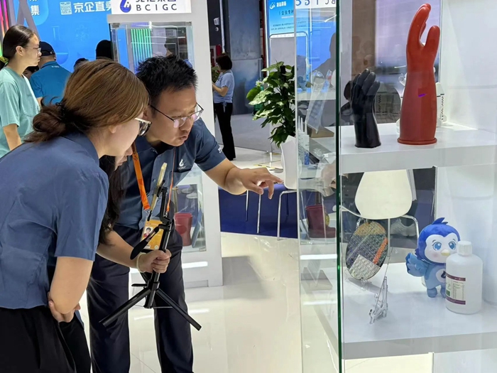 在展位现场,有的观众对于展示的储氢瓶内胆专用材料高度关注,并有强烈的合作意愿,有的观众对展示的软包装胶黏剂主动提出市场开发合作意向,还有很多观众带着孩子逐一学习观摩展出的化工领域创新产品。可以说,化工集团的主题展位既是商业合作的沟通交流平台,又是了解化工、学习知识的科普教育平台。