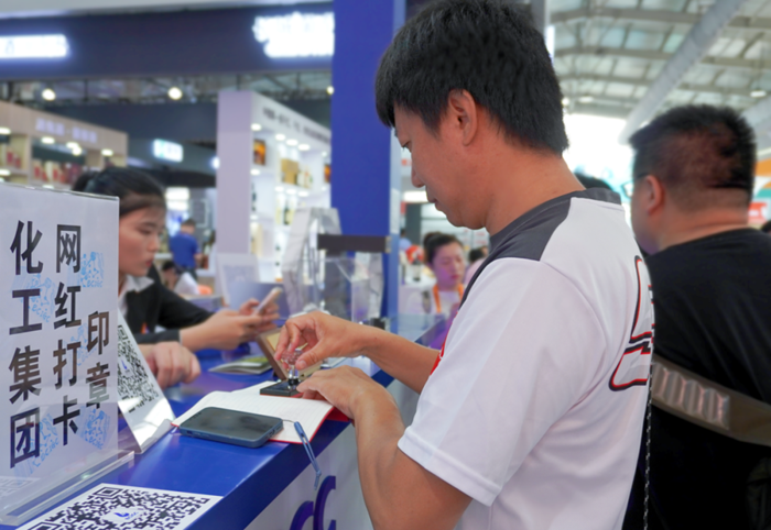 网红打卡印章,是此次参展的又一亮点,集团为此专门制作了有集团名称楼宇的印章。“4号馆,北化集团,3免(3个印章、免费)”的服贸会攻略已在“小红书”上传开,人们纷至沓来,在关注集团微信公众号后,将“色情网 ”印在自己的本上,让北京化工在潜移默化中传播。